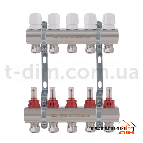 Колектор латунний з витратомірами та євроконусами Thermo Alliance Standart 1" на 5 виходів TAS235W5E