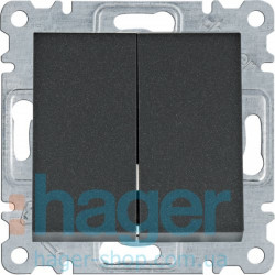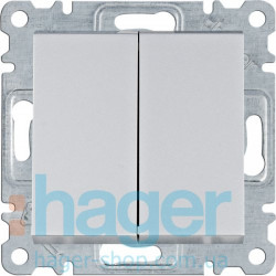 Выключатель двухклавишный, белый, Asfora, без рамки