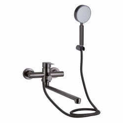 Змішувач для ванни Qtap Presto з довгим поворотним виливом (з душовим гарнітуром) QTPRE2601GRP45583 Graphite