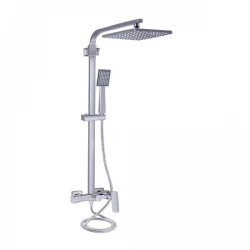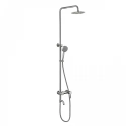 Душова система Qtap Sloup 57103OC - естетичне та практичне рішення в одному виробі. Вона виготовлена з якісної латуні, нержавіючої сталі та міцного пластику, що не підпадають під вплив корозії. Система виконана з хромованою глянцевою поверхнею, обладнана стильним змішувачем, а також двома видами душу - ручним та верхнім. Перемикання між споживачами здійснюється за допомогою дивертора на корпусі змішувача. Виріб стане яскравим акцентом в інтер'єрі будь-якої сучасної ванної кімнати.