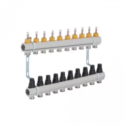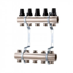Колекторна група в зборі ICMA Арт. A2K013 призначена для розподілу теплоносія в системі опалення теплої підлоги, має п'ять виходів і допомагає поліпшити управління опаленням в окремих контурах системи опалення підлоги. Колектор забезпечує просту і точне регулювання витрати теплоносія в одиничному контурі всієї системи «Тепла підлога», і при необхідності забезпечують повне перекриття окремих контурів системи.