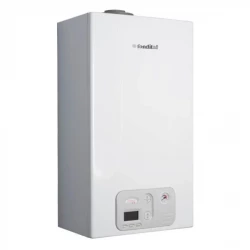 Котел газовий двоконтурний настінний Protherm "Рись" 28 з функцією приготування гарячої води. Вбудований блок електронного керування забезпечує електронний розпал пальника і контроль горіння, а також безперервну модуляцію газу. Середній ККД за опалювальний сезон 93%. Інформаційний дисплей на панелі управління газового котла. Примусове відведення продуктів згоряння.