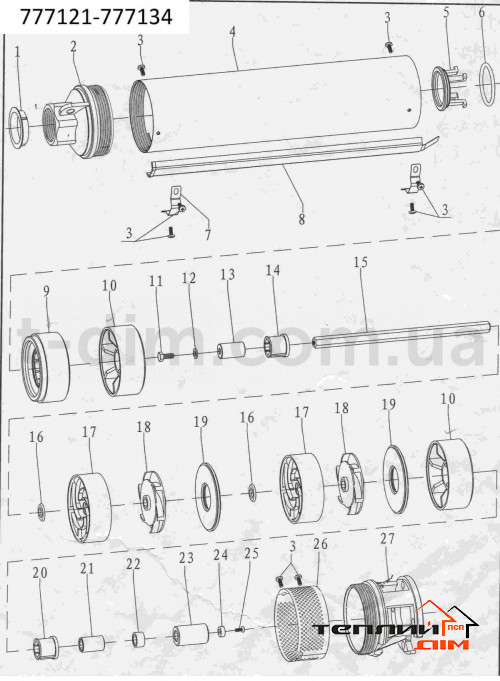 Насоси даної серії призначені для перекачування чистої води і можуть застосовуватися: для побутового використання при водопостачанні з свердловин і резервуарів (обов'язкова установка кожуха охолодження), для перекачування води в резервуари, для зрошувальних систем, для автоматичної подачі води спільно з невеликими резервуарами при використанні керуючої автоматики (керуючі реле, контролери тиску). Електродвигун насоса приєднується кабелем: Марки H07RN-F (аналог КГ-ХЛ) Жили з мідного дроту, оболонка - поліетилентерефталатна плівка і ізоляційна гума Гнучкість - багатодротяні струмопровідні жили в поєднанні з невеликим кроком скручування Температура навколишнього повітря від -25°C до +60°C Ізоляція кабелю при короткому замиканні, тривалістю не більше 5 сек., витримує температуру +200°C Переріз розраховується і відповідає потужності електродвигуна Підібрати кабель можна за посиланням >>> Насосна частина: Корпус насосної частини: нержавіюча сталь AISI 304 Вихідний фланець: латунь Вал насосної частини: нержавіюча сталь AISI 304 Муфта вала: нержавіюча сталь AISI 304 Робоче колесо: технополімер Шайба фасонная розділова: технополимер Дифузор: технополимер Електродвигун: Тип двигуна: асинхронний, маслонаповнений, з вбудованою в обмотку термозахистом Обмотка статора: мідь Корпус електродвигуна: нержавіюча сталь AISI 304 Вал двигуна: нержавіюча сталь Механічне ущільнення: кераміка/графіт Підшипник: кочення (C&U) Напруга: U 1 ~ 230 ± 10% В Частота: 50 Гц Клас ізоляції: F Клас захисту: IP68 Кабель: 3 × 1.25 мм² × 2.2 м (кількість жил × перетин × довжина) Умови застосування: Максимальна температура рідини: + 35ºС Глибина занурення під дзеркало води: до 60 м Діаметр свердловини: від 120 до 150 мм Зміст абразівосодержащіх домішок в підвішеному стані (піску, глини, вапна і т.д.): не більше 0.25% Водневий показник води (рН): 6.5-8.5 Загальна мінералізація води: не більше 1500 г/м³ Термін гарантійного обслуговування: 24 місяці Особливості: Укомплектований Ремкомплектом для подовження кабелю (профі) AQUATICA (779581) Як правильно використовувати ремкомплект для подовження кабелю після 2015 року описано тут Основні дані Торгова марка Dongyin Гарантія, міс 24 Технічні дані Тип відцентрові Потужність, Вт 1100 Максимальний напір, м 102 Максимальна продуктивність, л/хв 100 Діаметр свердловини, мм від 120 до 150 Кількість фаз Однофазний Напруга U 1 ~ 230 ± 10% В Номінальна сила струму, I (А) 8.0 Частота, Гц 50 Потужність двигуна приводу, к.с. 1.5 Вал двигуна Нержавіюча сталь Робоче колесо Технополимер Тип двигуна Асинхронний, маслонаповнений, з вбудованим в обмотку термозахистом Обмотка статора двигуна Мідь Механічне ущільнення Кераміка/графіт Клас ізоляції F Клас захисту IP68 Довжина кабелю, м 2.2 Перекачувана рідина Зміст абразівосодержащіх домішок (піску, глини, вапна і т.д.): не більше 0.25% Діаметр напірного патрубка DN2, "(дюйм) 1 ¼ Матеріал корпусу Нержавіюча сталь AISI 304 Діаметр, мм 102 Максимальна глибина занурення під дзеркало води, м до 60 Максимальна температура перекачуваної рідини, °C 35 Максимальний діаметр свердловини, мм 150 Діаметр твердих частинок в підвішеному стані, мм 0.2 Габаритні розміри Довжина, мм 1029 Маса брутто, кг 16.713 Упаковка товара Довжина упаковки, мм 1070 Ширина упаковки, мм 100 Висота упаковки, мм 140
