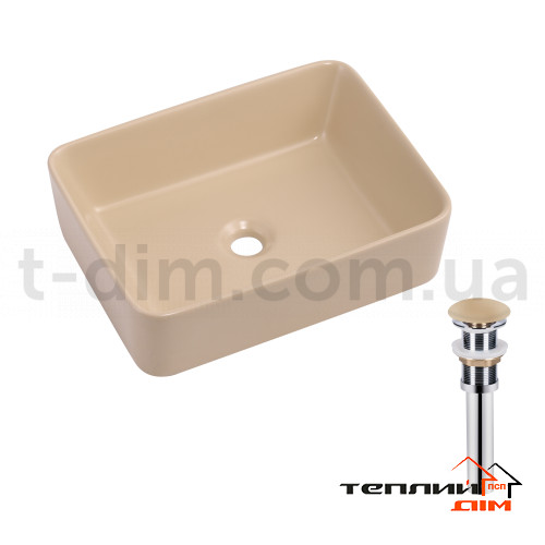 Раковина накладна Qtap Tern 480x370x135 мм, Beige, прямокутна, з донним клапаном QT17116069SB