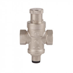 Редуктор тиску води. Конструкція редуктора тиску - поршнева. Приєднання: внутрішнє різьблення. Два бічних підключення 1/4 "для манометра. Сідло з нержавіючої сталі 18/10. Максимальний тиск на вході 25 бар, тиск на виході регулюється від 1 до 6 бар. Фабрична настройка тиску на виході 3 бар. Максимальна робоча температура 90 ° C.