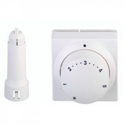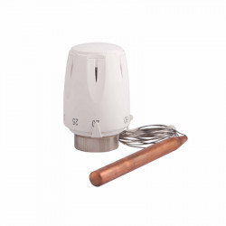 Термостатична головка для терморегулювальних і термостатичних вентилів. Виносний датчик, для визначення температури на відстані від радіатора. Ручна система блокування температури вибране значення. Принцип роботи термоголовки заснований на стисканні та розширенні внутрішнього циліндричного гофрованого пристрої наповненого спеціальною рідиною в виносному датчику. Дана термоголовка встановлюється, якщо опалювальний прилад закритий радіаторним екраном або важкими шторами.